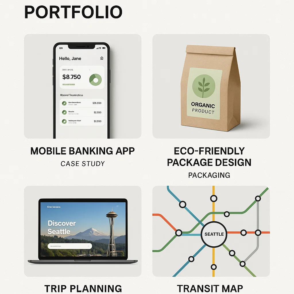 Diverse project types and mediums demonstrate your versatility and adaptability, qualities highly valued in Seattle’s dynamic design environment. Include examples of digital design, print work, branding projects, and any interactive or motion graphics that showcase technical skills. If you have experience with web design, mobile interfaces, or emerging technologies like AR/VR, definitely include these as they align with Seattle’s tech focus.