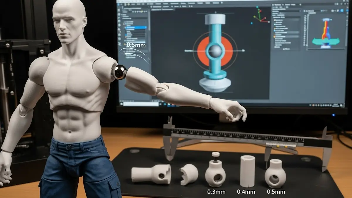 Clearance directly controls friction. Tighter clearances (0.3-0.4mm) create joints holding positions firmly—ideal for posed figures. Looser clearances (0.5-0.6mm) enable smooth swiveling but may not hold poses against gravity. The MakerBuildIt guide notes the importance of “Ensure that the pieces are not touching each other to allow proper movement”.