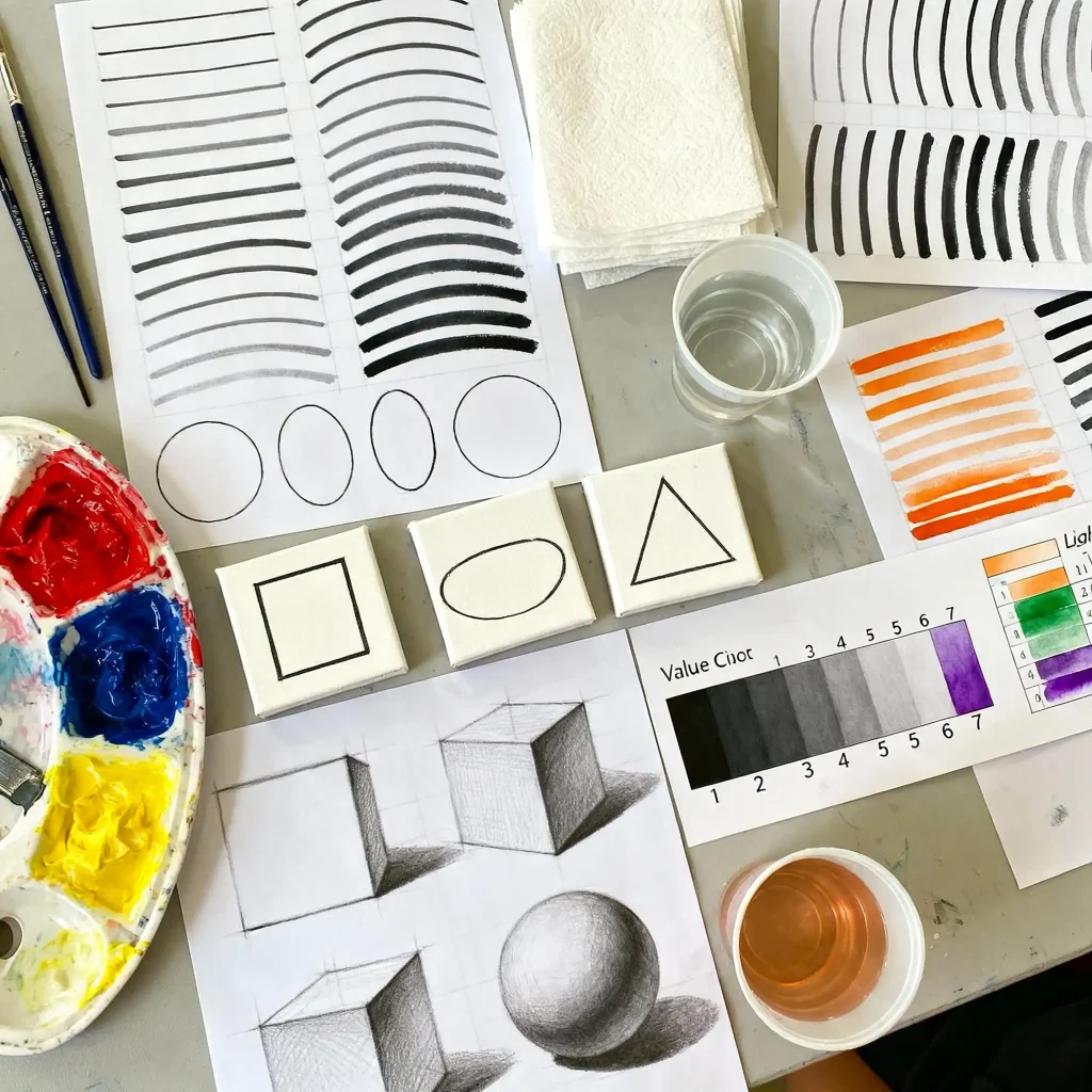 - Days 1-3: Focus on warm-up exercises (lines, shapes, value scales)